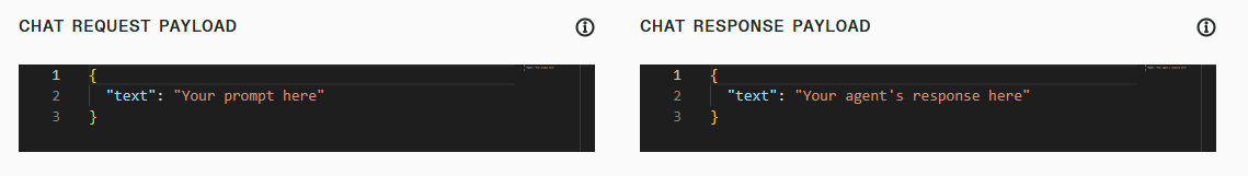 7. Ensure your agent chat framework follows the Chat Request and Chat Response Schema as shown below.<br>